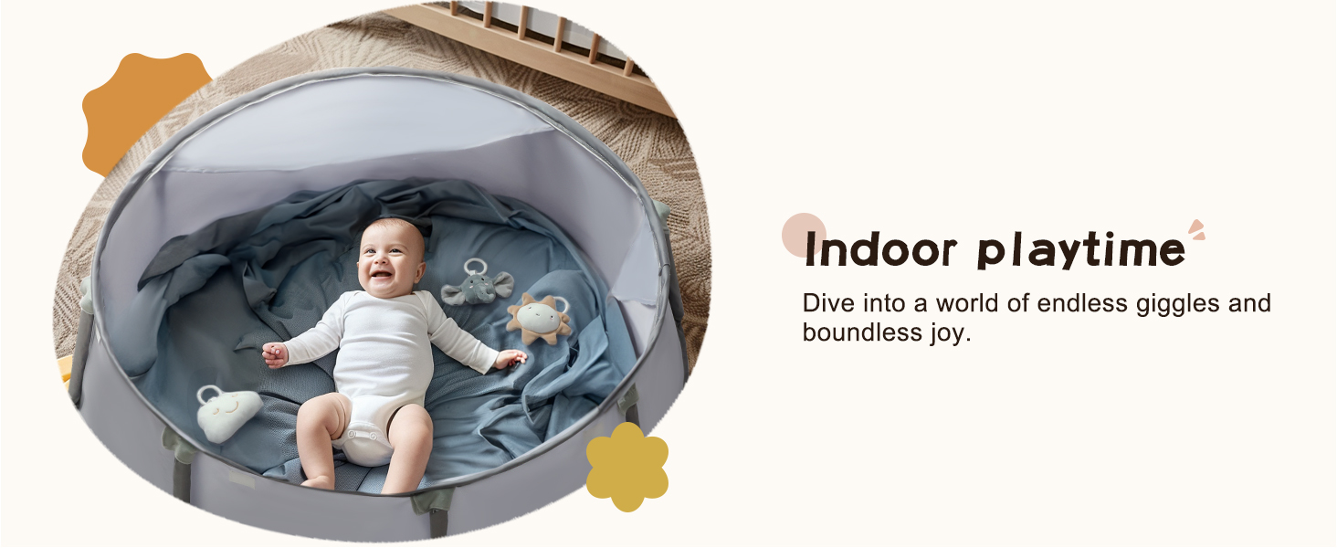 Indoor & Outdoor Use: Equipped with a canopy that provides UPF 20 sun protection and helps keep bugs away, making it ideal for both indoor and outdoor settings.