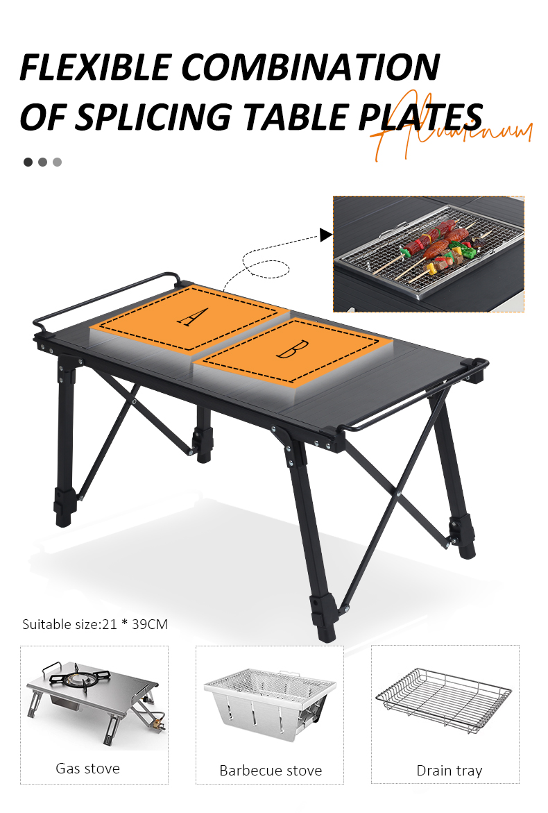 【Free Combination】: The table board is free and flexible to combine, A/B two units can be combined at will, can be placed to place the grill, gas stove, draining basket, etc., suitable for the size of 25 * 36, you can embed your own grill, can become a barbecue table to use. A variety of shapes and multi-functions to meet your needs.