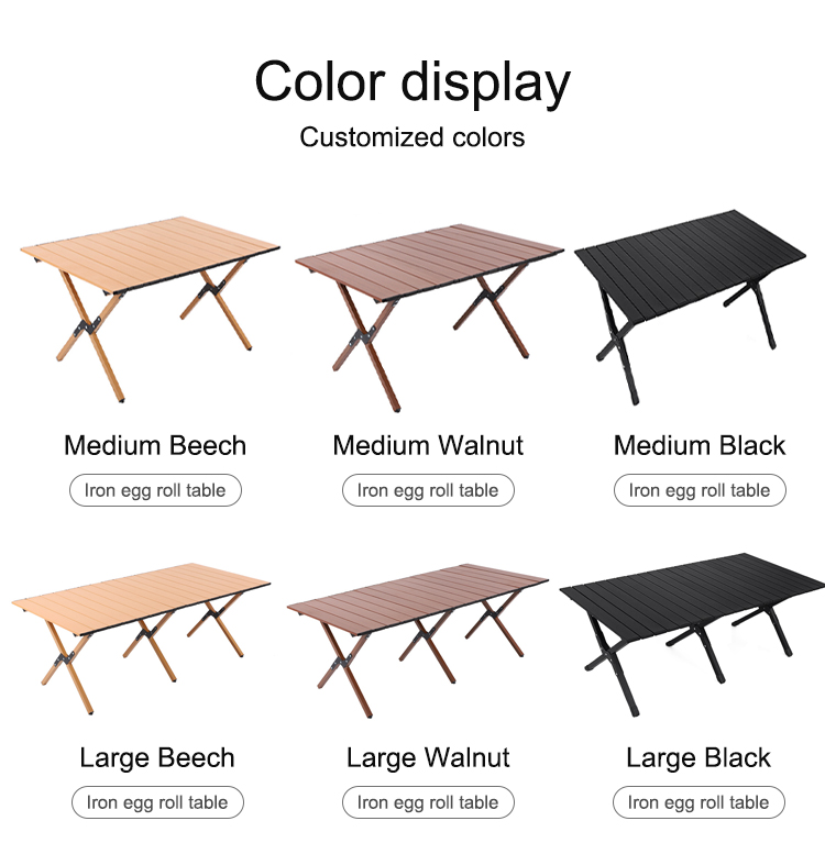 High Quality Material: Our folding camping table is consist of aluminum alloy, waterproof, no rust, corrosion resistant, easy clean, rugged enough for all your outdoor needs. And we have two colors of classic black and wood grain for you to choose
