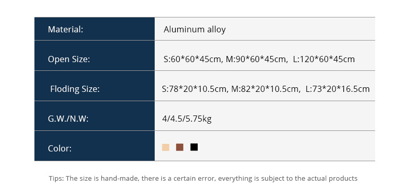 Multiple Size: There are 3 size in our camping table product, Unfolding size 60*60*44cm/ 90*60*45cm/ 120*60*45cm, No interfering side supports, so you can comfortably stretch your legs without worrying about hitting your knees, each table with storage bag, easy to store and carry, especially suitable for camping, picnic, BBQ, party, backyard, patio, as well as indoor use