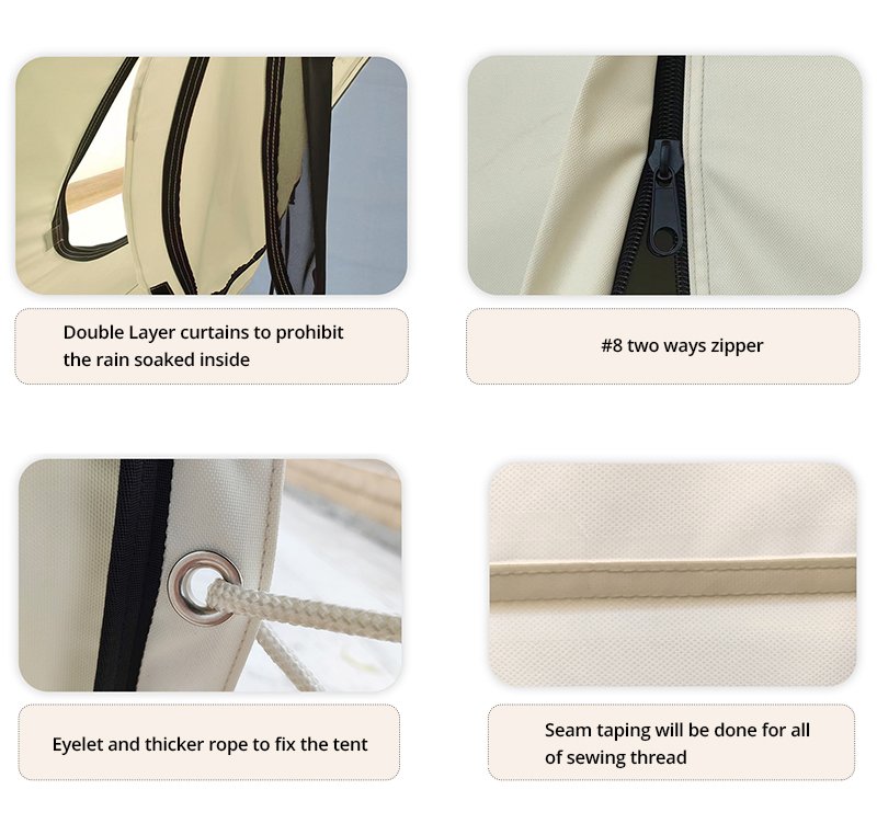 This canvas tent are designed so that it will keep you warm and safe even in near-freezing temperatures. The Camping tent also have a waterproof, weather-resistant design to keep you warm even in wet weather conditions and prevent you from getting damp - this is attained through our double-layer technology.
