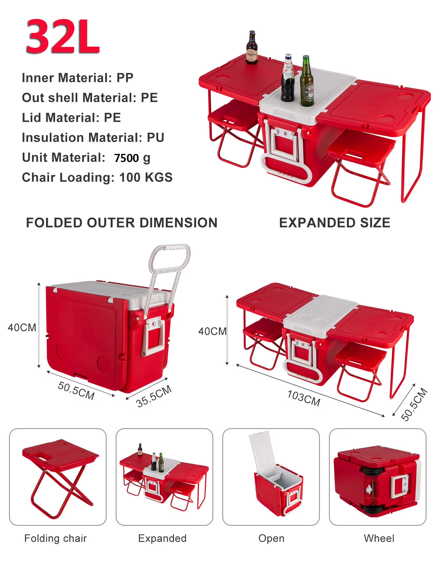 32L Multi-functional Insulation Folded Cooler Box Table Chair Set