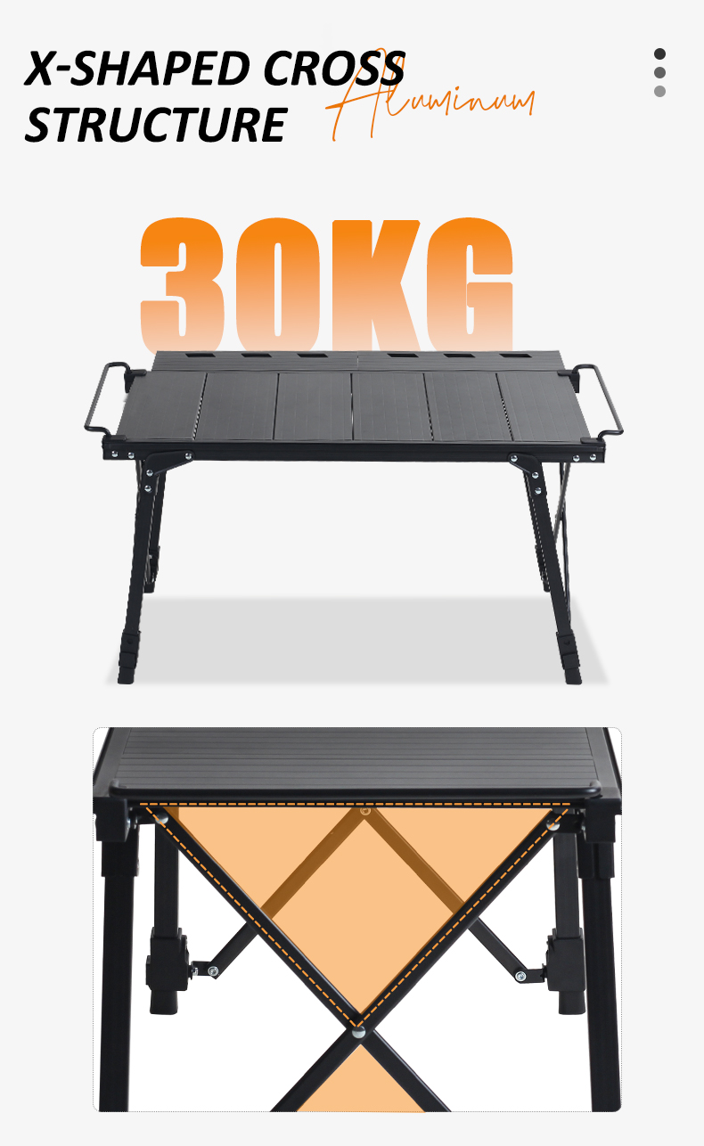 【X-cross structure】: Triangular structure design, X-shaped table leg structure is more stable, no shaking, good stability. The table top is made of aluminum alloy panel, carefully designed to bring better weighing for the table, about 30KG load capacity.