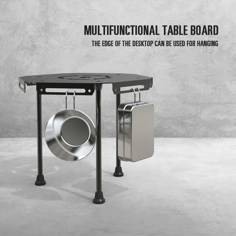 *Ideal table: With foldable design, it only takes a small part of the space, but it can provide a solid plane to place cooking and personal utensils. The holes on the table can be used to hang things, so that what you need can be reached.