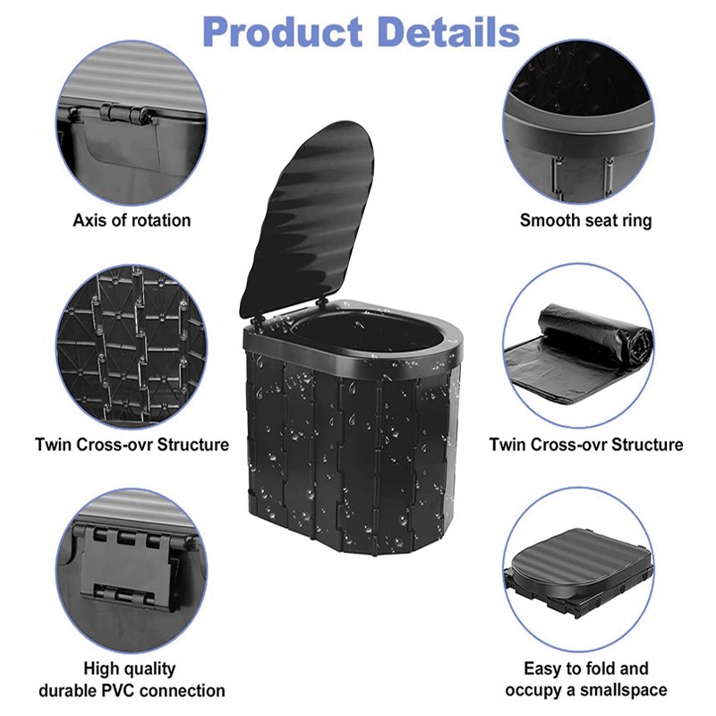 【MORE COMPACT】This folding portable toilet New Option: No assembly required, set up in seconds, more simple and compact. Folds small with a handy bag for easy transport. Good choice for you as a travel toilet, portable toilet for car or camping toilet.